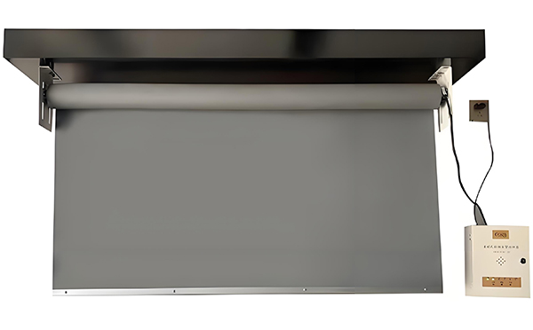 连接电源线和控制线,将民丰挡烟垂壁安装在支架上,并用螺丝固定。
